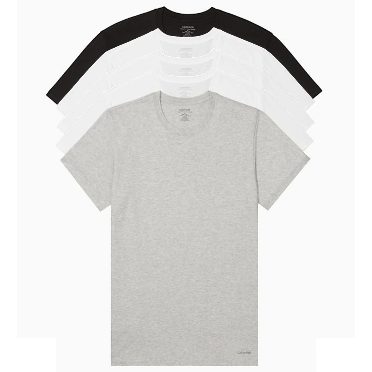 This essential 5-pack of Calvin Klein’s Cotton Classic Crew Neck features 3 white, 1 black, and 1 gray t-shirt. Designed with pure cotton for a soft hand and breathable comfort, finished with a crewneck and seaming details for an ideal layering undershirt. The Calvin Klein Underwear logo is at the hem.