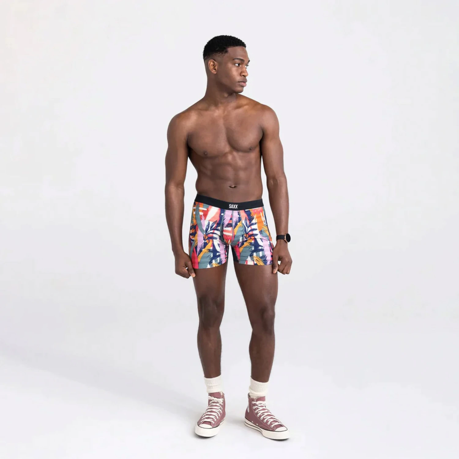 The Saxx DropTemp™ Cooling Technology wicks sweat quicker than the “experts” in cooling. Cool just got cooler. DropTemp™ boosts your body’s natural cooling capacity by (drumroll) evaporating your sweat. (Ta da!) It’s the whole package when it comes to keeping yours cooler. This Surf Safari Boxer Brief is the perfect look for summer fun.