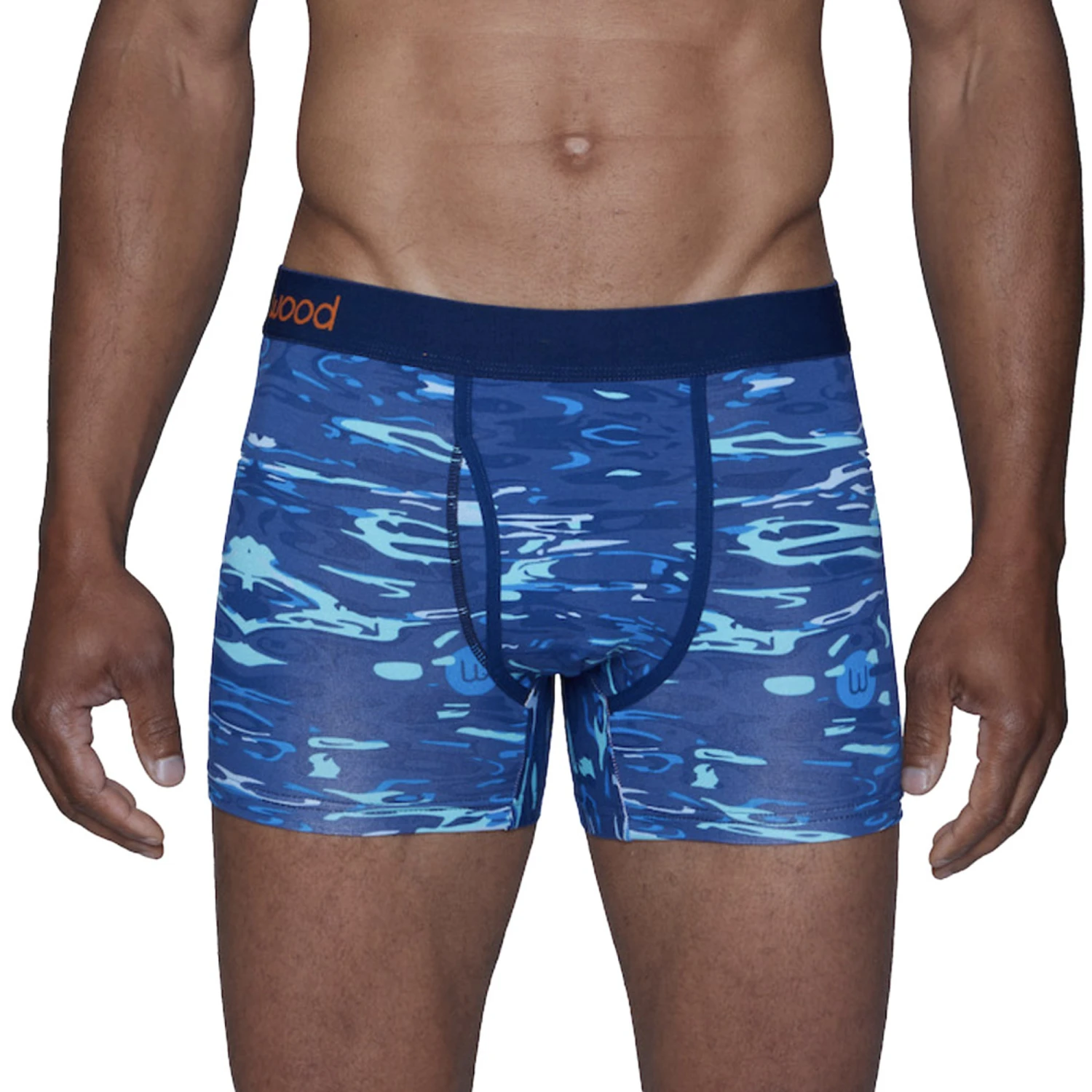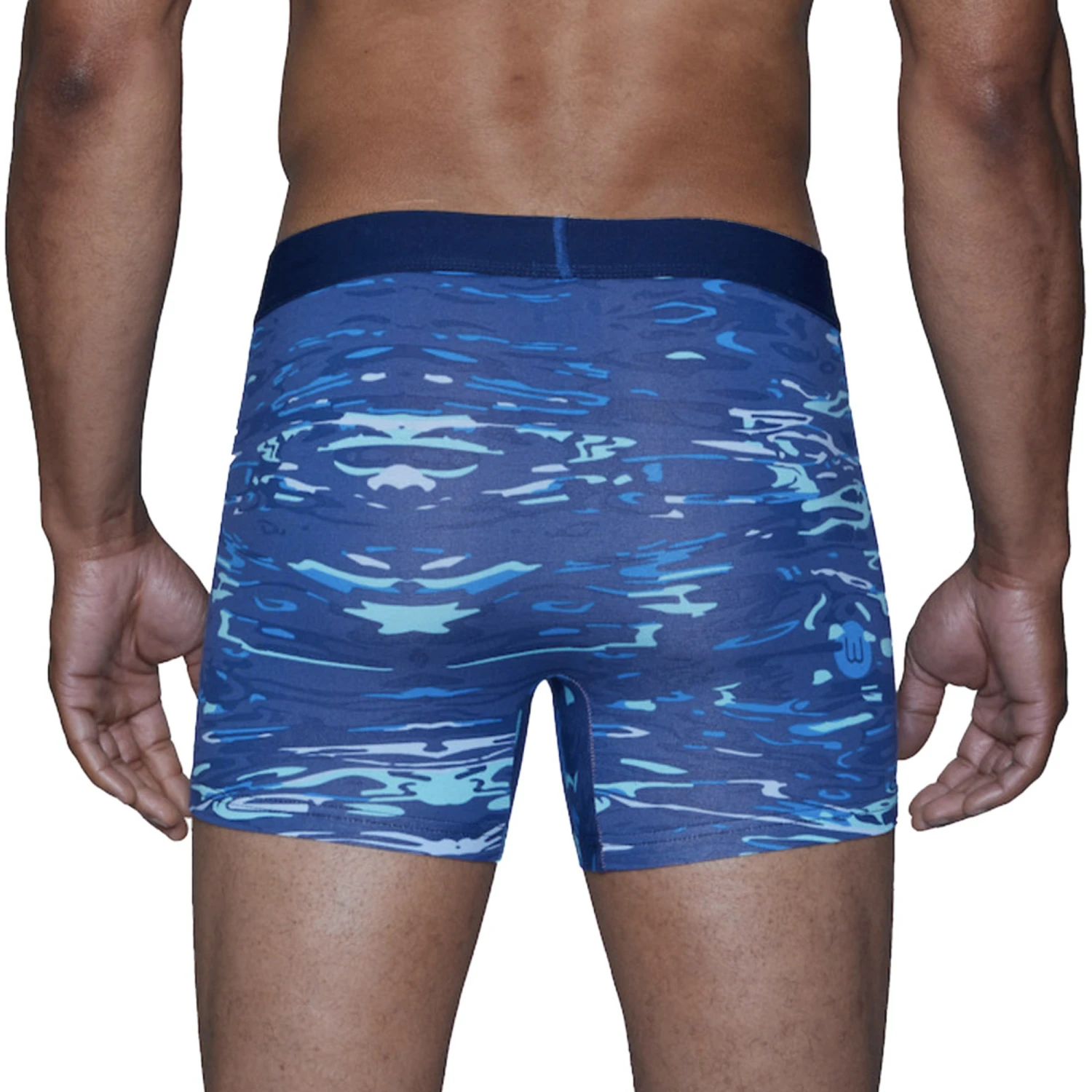 A favorite Boxer Brief with a functional fly. Maximum comfort. Total fit. A striking print, inspired by our liquid “camo”, Blue Liquid (affectionately known around here as ‘wet Wood’) takes this amazingly popular style to new heights. Comfortable, non-binding waistband. Plush against skin, combed for softness. You won’t even feel it.