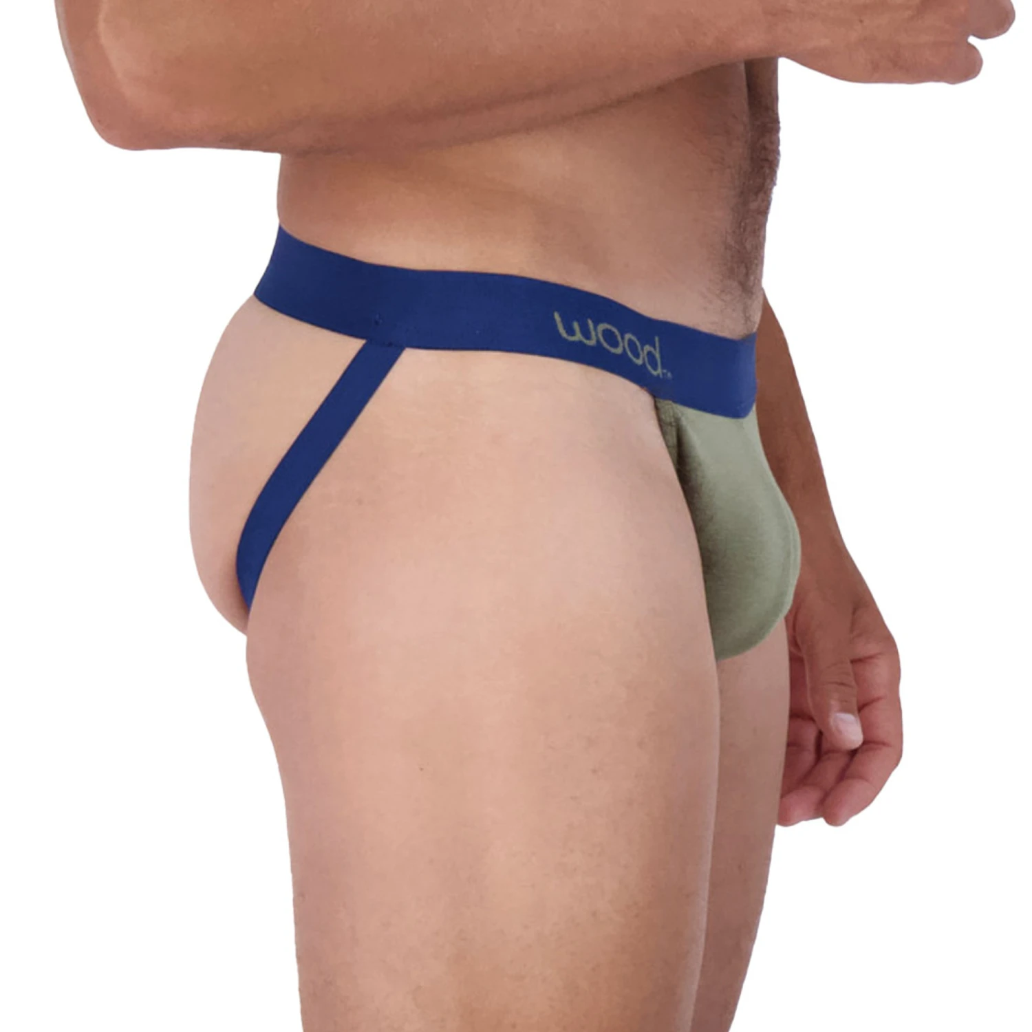 A jock in Olive with Navy trims—the ultimate in function AND fashion. Wood’s take on this jock strap is sophisticated with breathability and high performance capabilities made from a comfortable, super-soft cotton, Lenzing Modal blend. Not just for the athlete. The Wood Jock is perfect for your wardrobe. Optimal support, everyday comfort, full performance, and a sexy look.